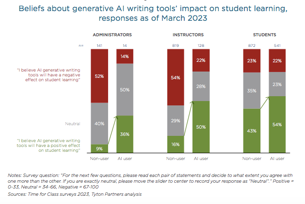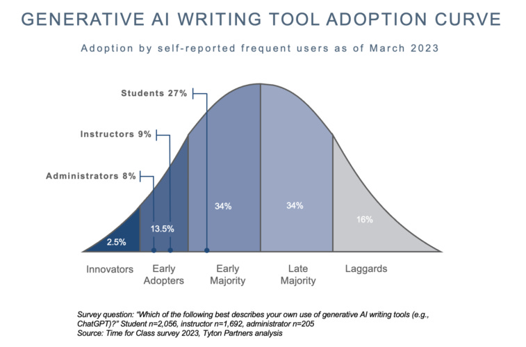 Adoption: According to the surveys explored above, higher education administrators are the slowest to adopt GenAI into their daily practice.