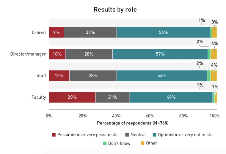 Perspective: Faculty seem to be concerned about GenAI. For instance, in a recent EDUCASE poll, over a quarter (28%) of faculty respondents indicated they are pessimistic or very pessimistic about the technology.